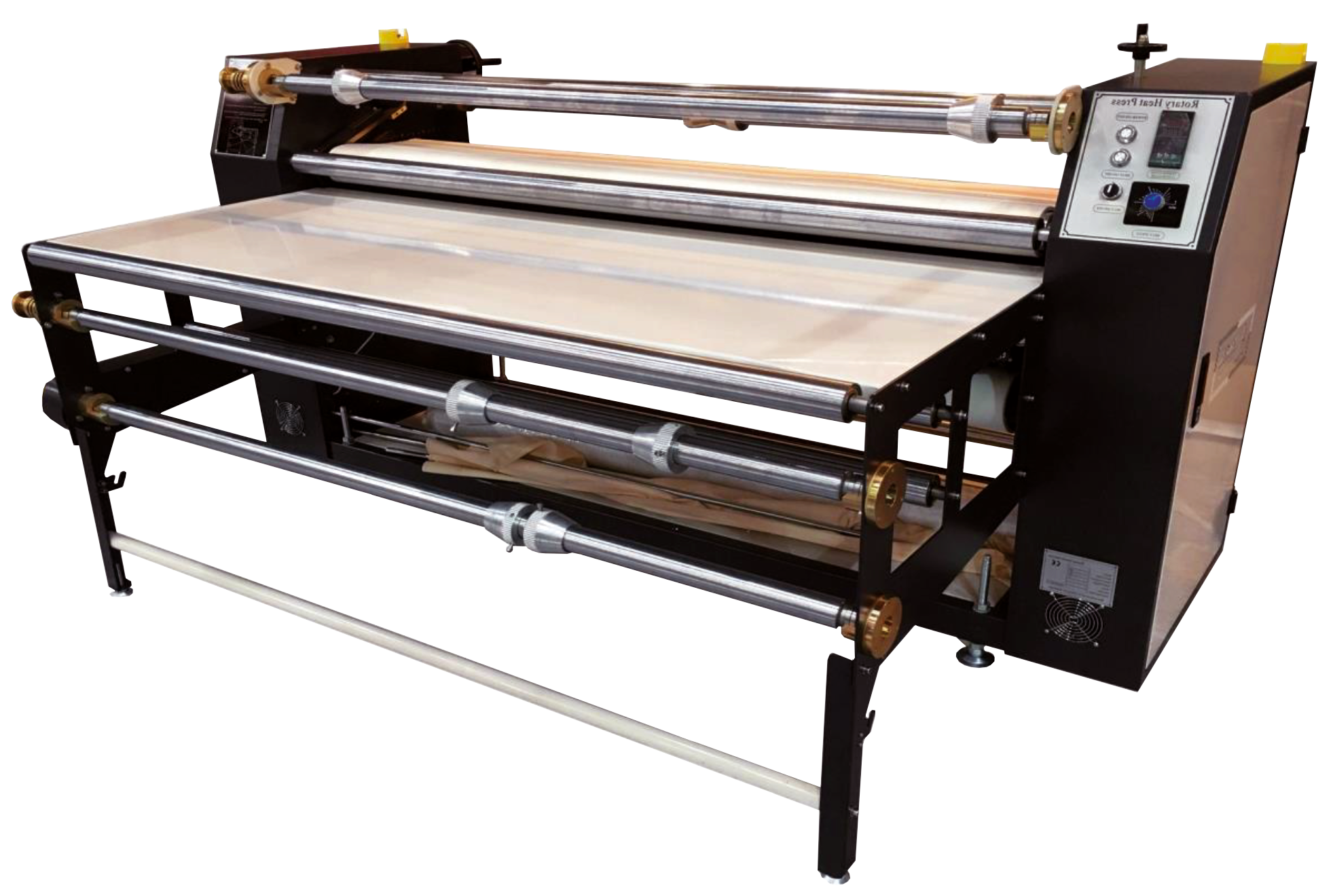 Каландровый термопресс PD-1200S с маслонаполненным главным валом и шириной 1200 мм. Основное применение устройства – термотрансферный перенос изображений на полиэфирные ткани. Печать осуществляете в сублимационном принтере по специальной бумаге сублимационными чернилами. Далее картинка совмещается с тканью в каландровом термопрессе. Под действием нагрева каландра (маслонаполненного барабана) изображение переносится с бумаги на ткань - происходит процесс возгонки изображения (переход из твердого в газообразное состояние и обратно в твёрдое на ткани). Термопресс PD-1200S имеет основной вал диаметром 200 мм и длиной 1200 мм, нагрев осуществляется при помощи встроенных в него тэнов. Простая и надежная конструкция пресса позволит эксплуатировать его 24 часа в сутки.